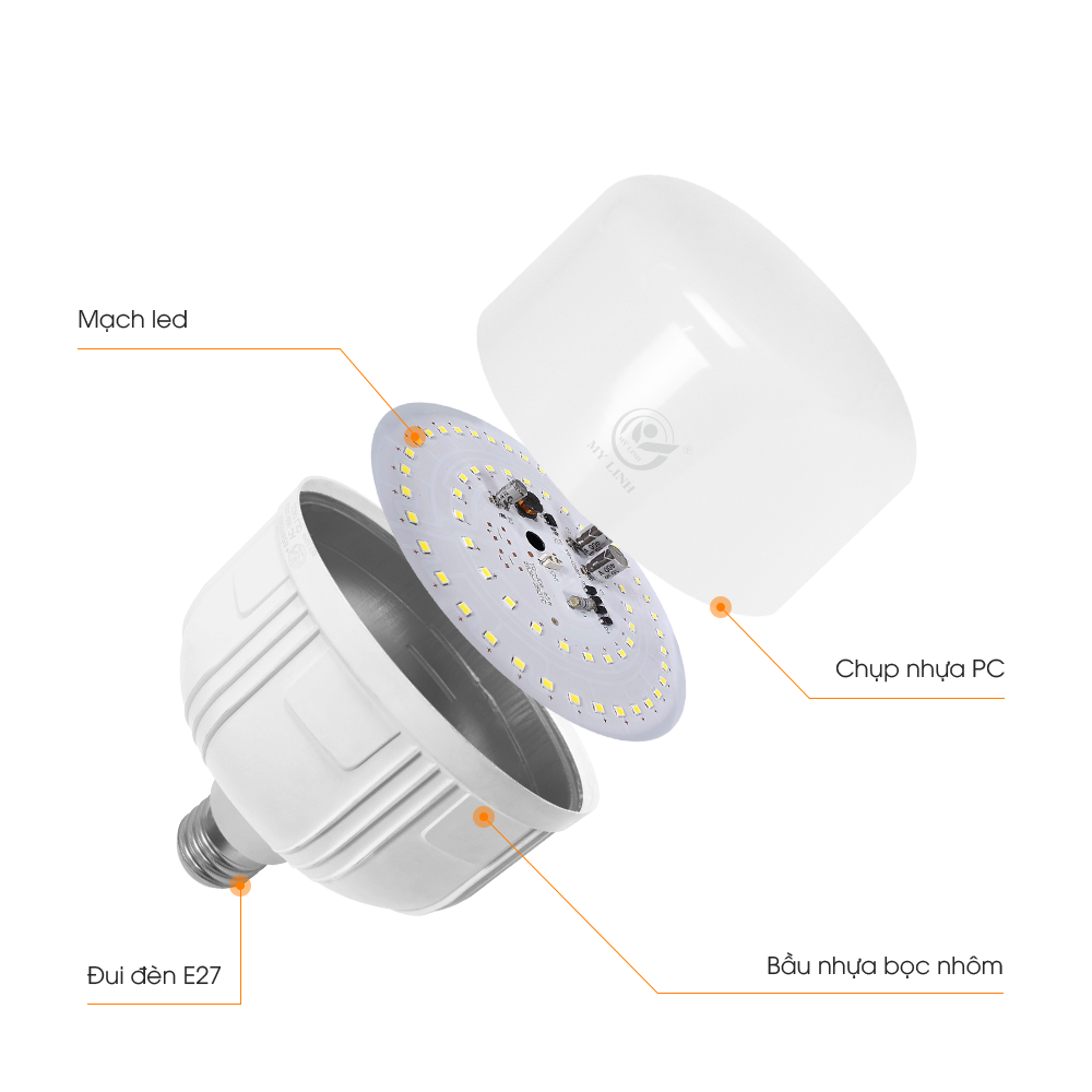 - Bóng đèn được thiết kế hình trụ cho độ tỏa sáng rộng
